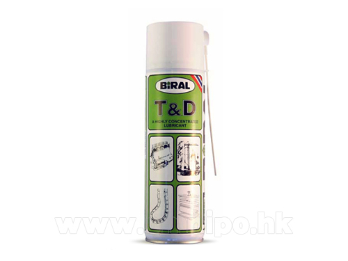 BIRAL T&D噴霧式潤滑油(H511... —— Biral T&D潤滑油是在低粘度的油性劑中配合以特殊的極壓劑精煉而成的高濃度潤滑劑,Biral T&D的合金膜從-40°C到300°C均能發揮效果,東莞市萬能工業材料有限公司有售,訂購熱線400-660-6100